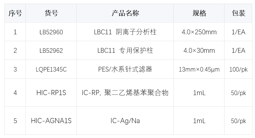 面對(duì)這一痛點(diǎn),廣州綠百草推出 LBC11陰離子分析柱